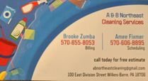 A&B Northeast Cleaning Service provides cleaning service's to residential client's and businesses in Luzerne County and surrounding area's. We customize our services to meet your specific needs. A&BNE work's hard to provide a high quality cleaning service to meet your high quality residential or business needs. We will be offering a special to disenfect you home due to COVID -19. Ask us about daily, weekly, bi-weekly and monthly service. Contracts welcome. Call today for a free quote.